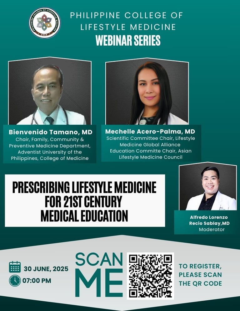 The Philippine College of Lifestyle Medicine is committed to advancing the field by providing ongoing scientific activities designed to enhance and update the competencies of lifestyle medicine practitioners and advocates. These activities—ranging from conferences and workshops to research presentations and continuing professional development programs—serve as platforms for disseminating the latest evidence-based knowledge, clinical best practices, and innovations in lifestyle medicine. The goal is to equip healthcare professionals with up-to-date skills and insights that support the effective implementation of lifestyle interventions in the prevention, treatment, and reversal of chronic diseases. Through these initiatives, the College fosters a culture of lifelong learning, interdisciplinary collaboration, and professional excellence in the practice of lifestyle medicine across the Philippines and beyond.